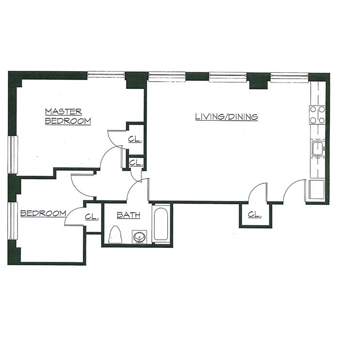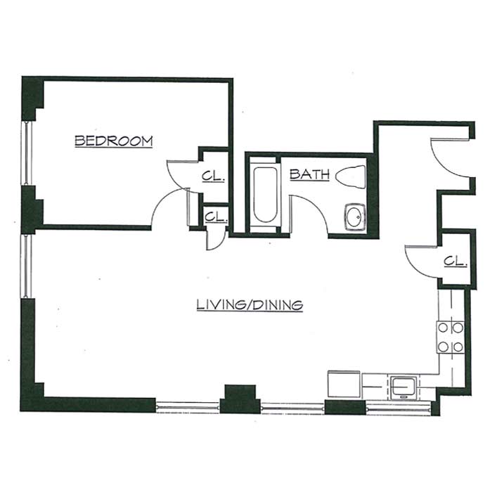 All Floorplans are unique. Sample represents a specific unit. Not all units are this size. Square footages vary on 1 BR from 542-762 SQ FT and 2 BR from 731 - 972 SQ FT.